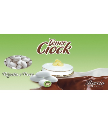Confetto con morbida anima di cioccolata bianca e ricoperta di un lieve e gustosa crema al gusto di ricotta e pera.